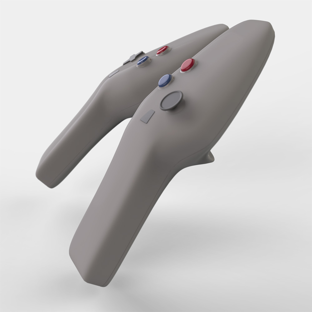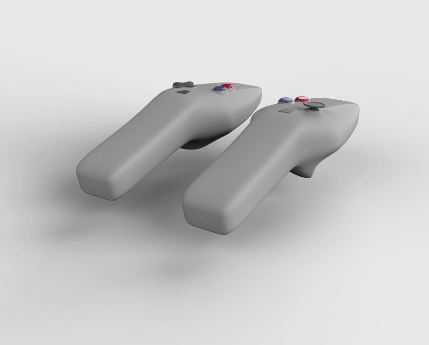 Virtual reality controllers focusing on grip and user interaction while in a digital space. Used to navigate an ever expanding 3D virtual space, Aero brings the past to the present. Built on what we know from controllers of the past, designed for the modern digital age.