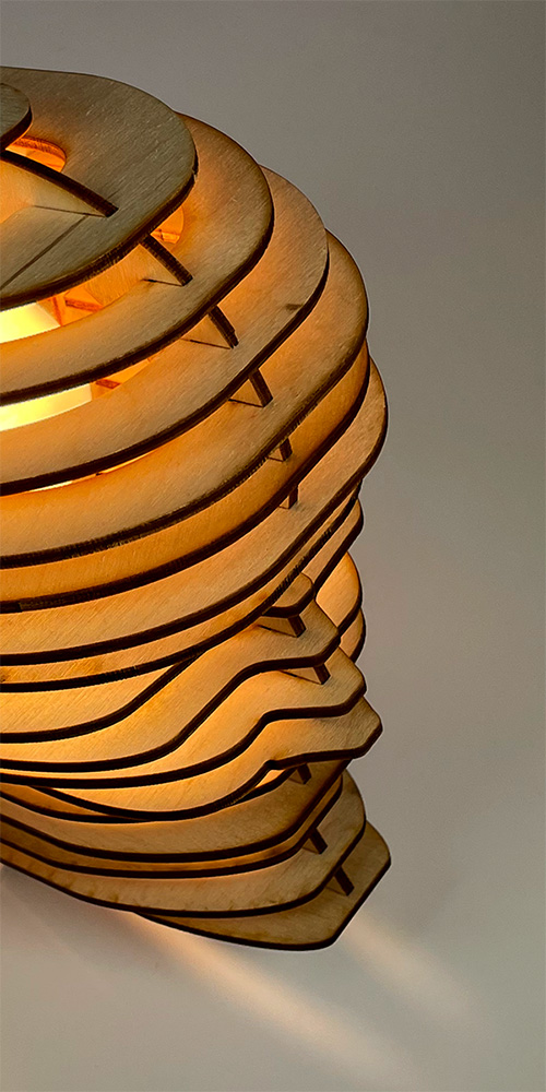 Maximizing the space between cuts, a 50watt standard light bulb cuts through giving ample lightiing to a small to medium sized room. The number and frequency of splits still allows users to look at the lamp without it being too bright.